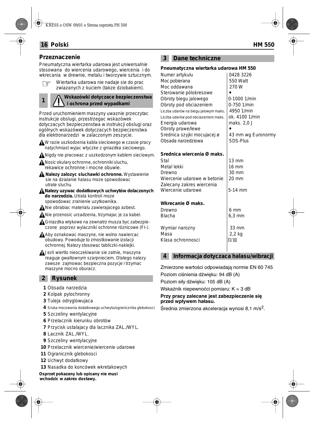 HM 550 - Wiertarka elektryczna KRESS - Bezpłatna instrukcja obsługi