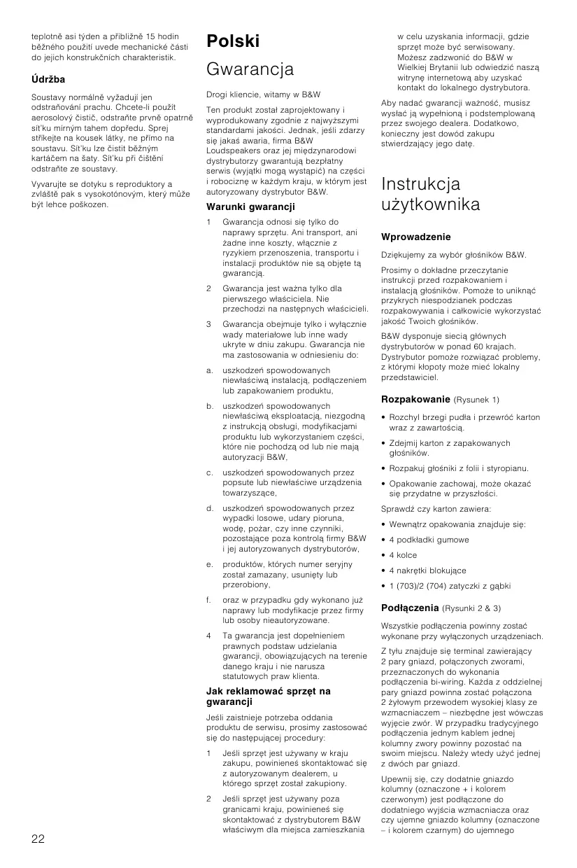 Polski Gwarancja 22 Instrukcja uÃytkownika 22