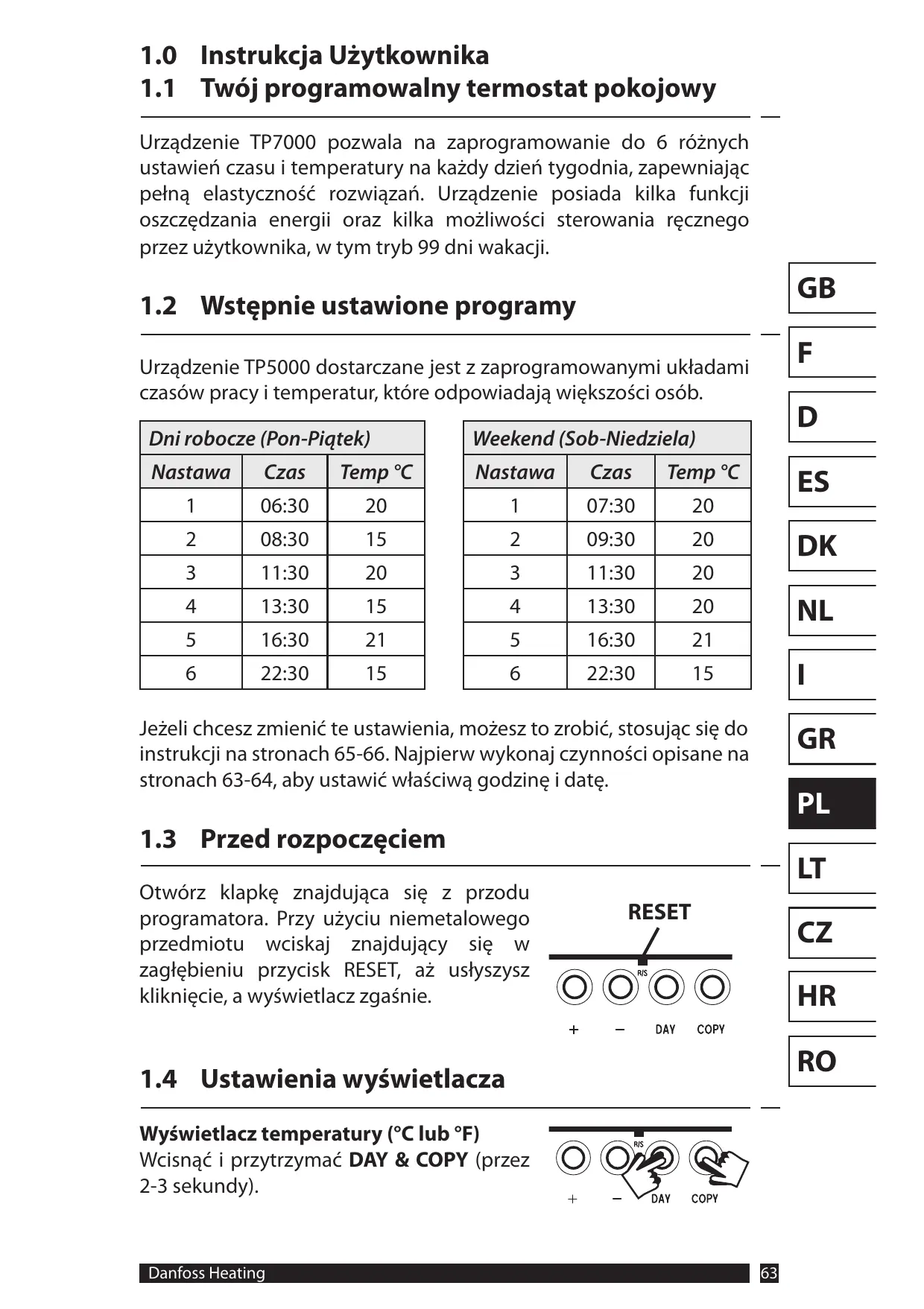 TP7000 - Programowalny termostat DANFOSS - Bezpłatna instrukcja obsługi