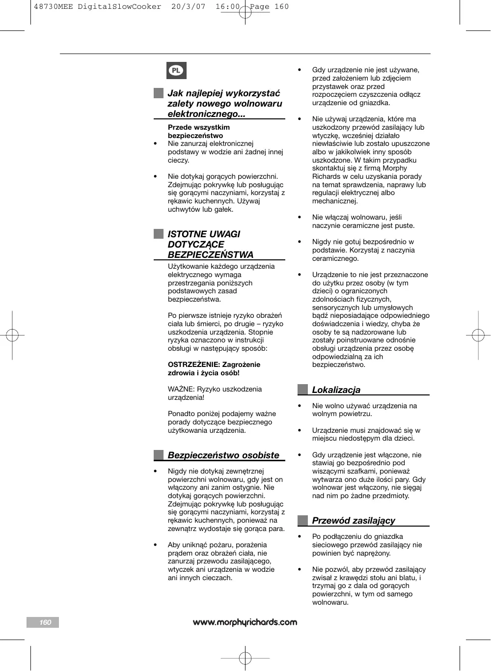 Pobierz instrukcję dla swojego w formacie PDF za darmo! Znajdź swoją instrukcję 48730 - MORPHY RICHARDS i weź swoje urządzenie elektroniczne z powrotem w ręce. Na tej stronie opublikowane są wszystkie dokumenty niezbędne do korzystania z urządzenia. 48730 marki MORPHY RICHARDS.