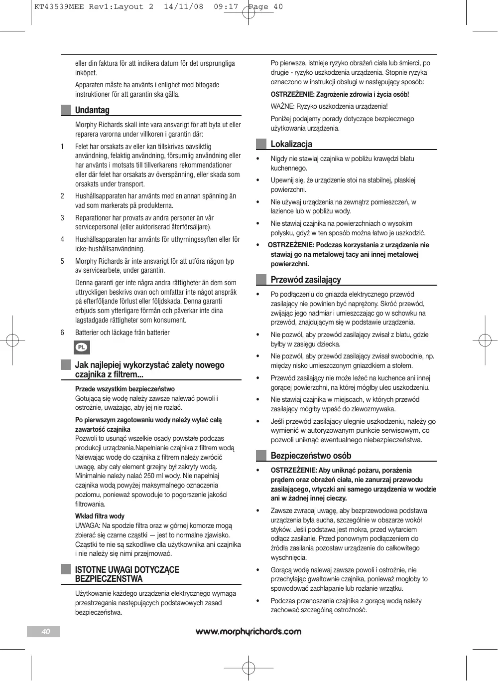 Firma Morphy Richards nie wykonuje żadnych czynności serwisowych w ramach niniejszej gwarancji.