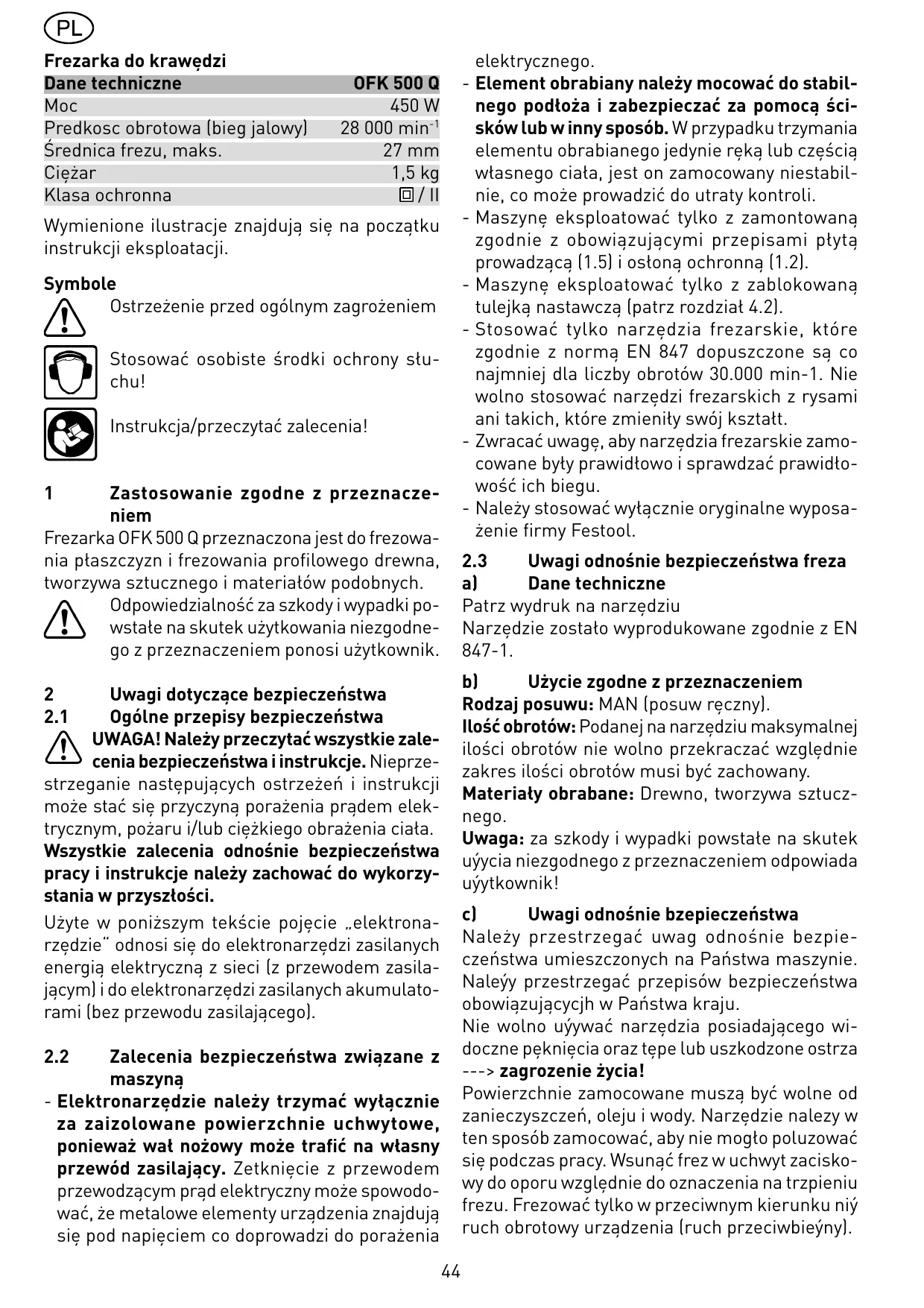 INSTRUKCJA OBSŁUGI OFK 500 Q FESTOOL