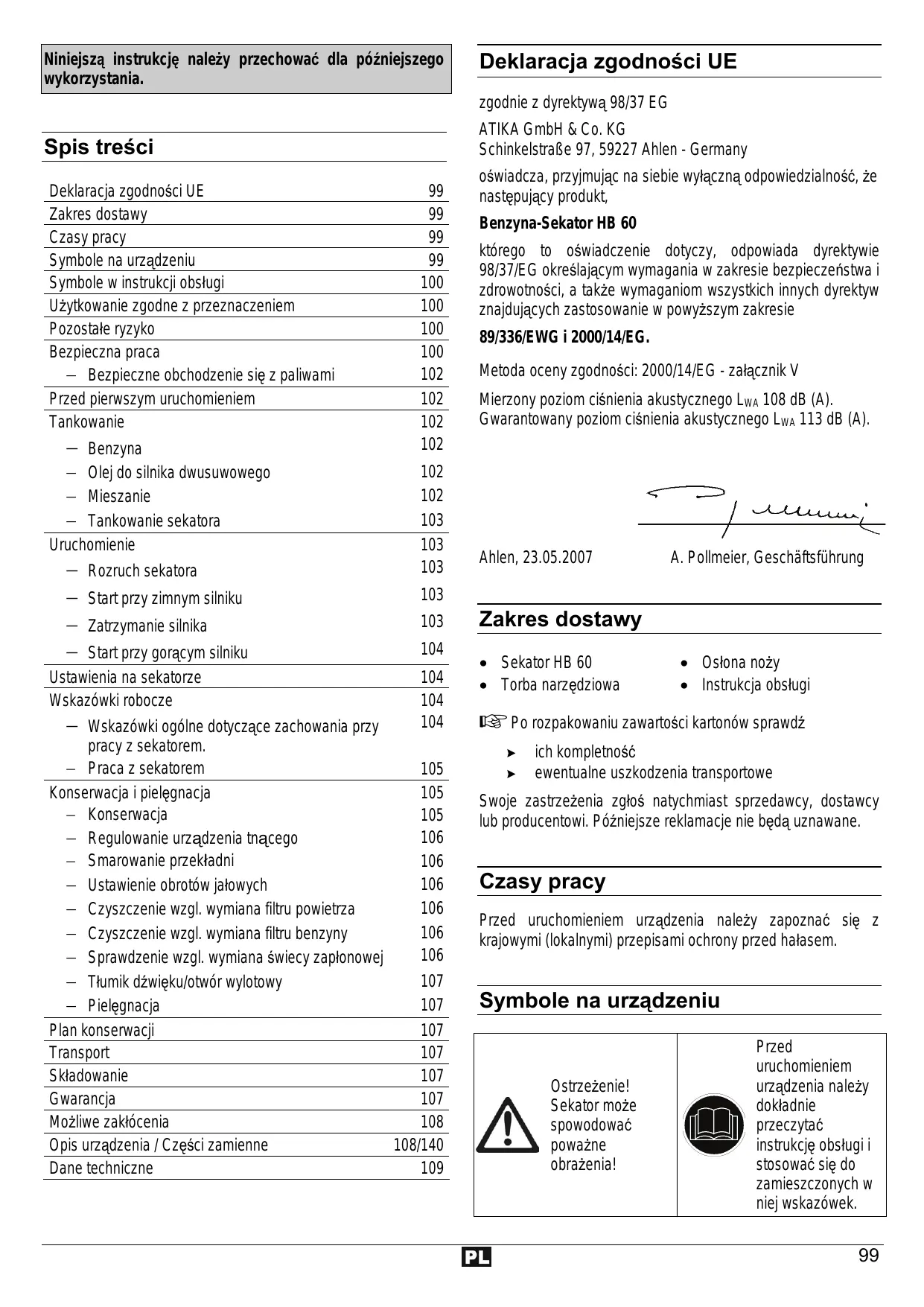 HB 60 - Spalinowa nożyce do żywopłotu ATIKA - Bezpłatna instrukcja obsługi