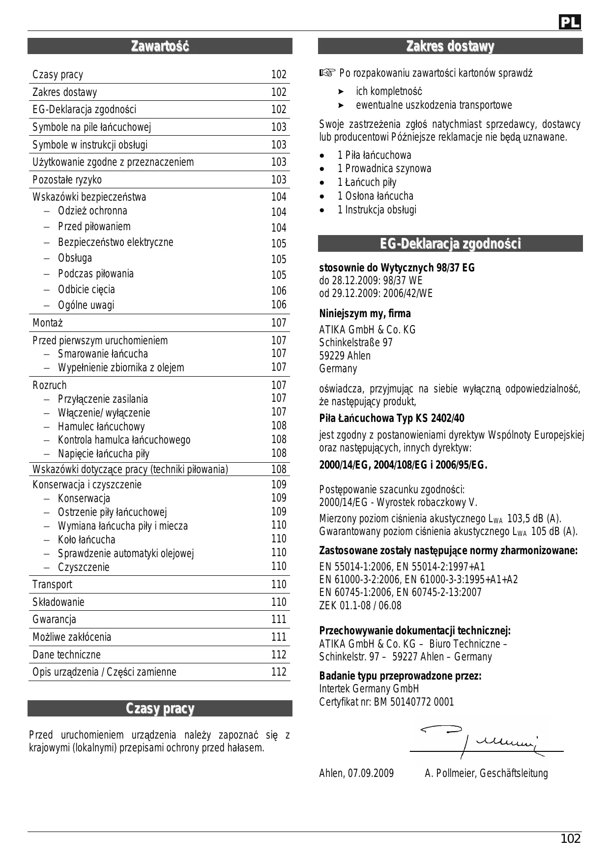 KS 2402-40 - Piła łańcuchowa ATIKA - Bezpłatna instrukcja obsługi