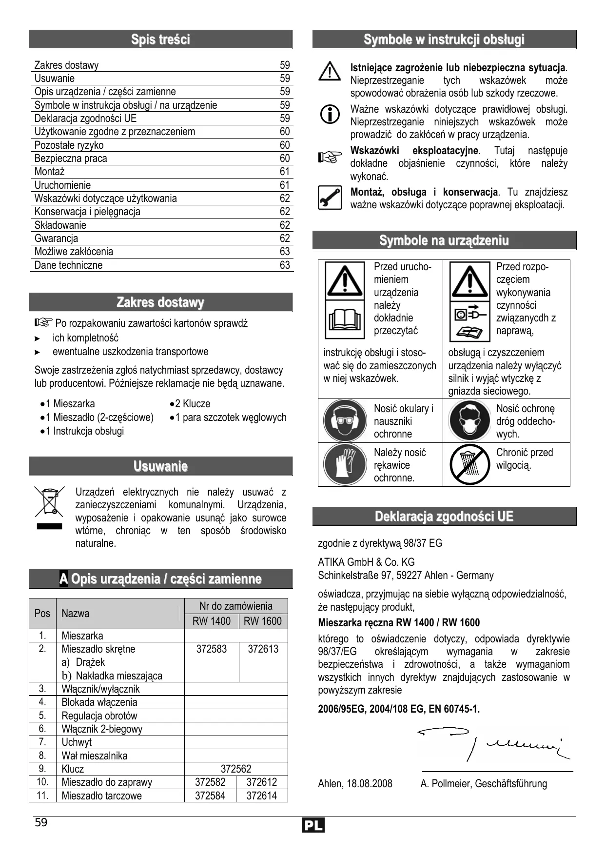 RW 1400 - ATIKA - Bezpłatna instrukcja obsługi