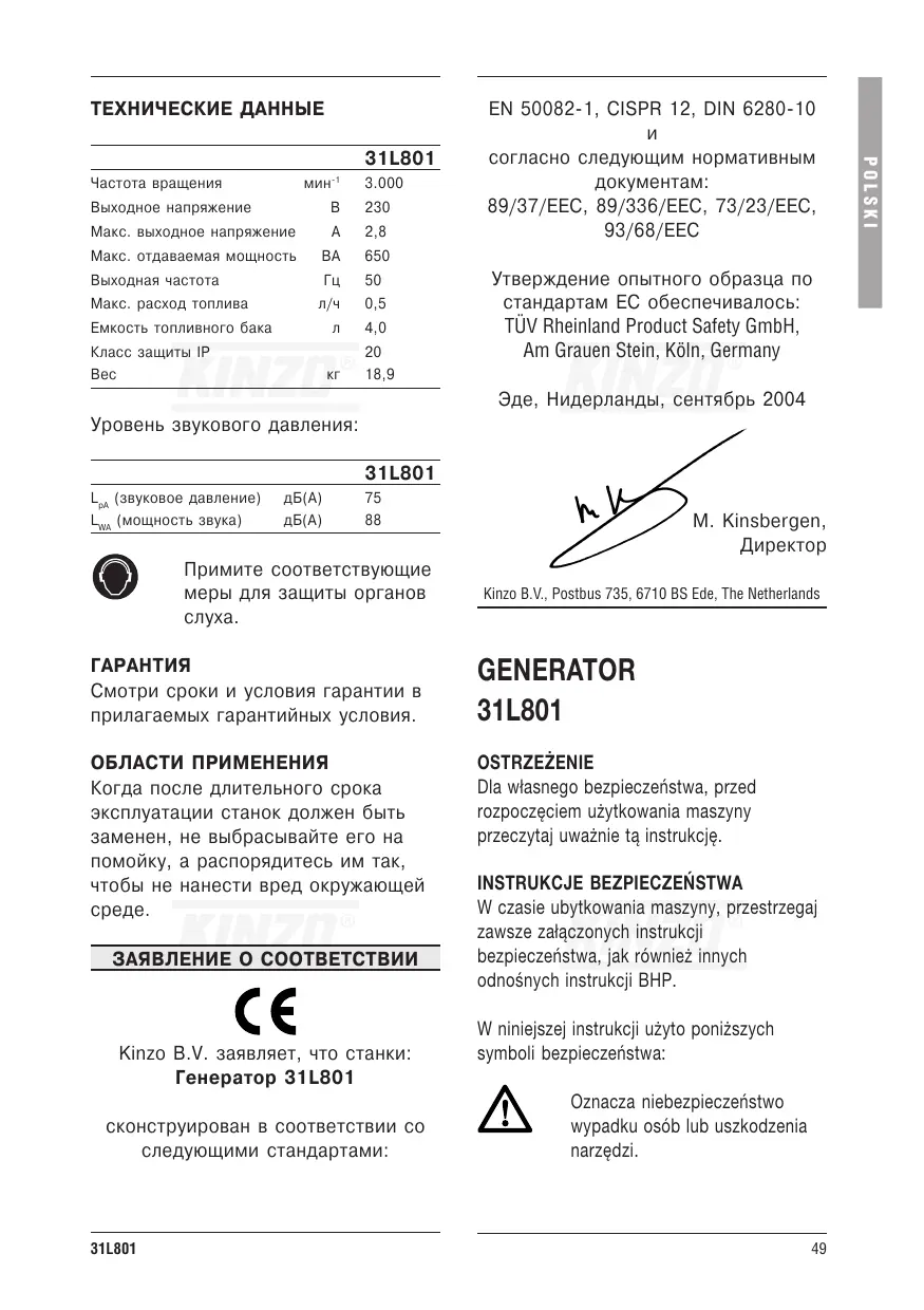 INSTRUKCJA OBSŁUGI 31L801 KINZO