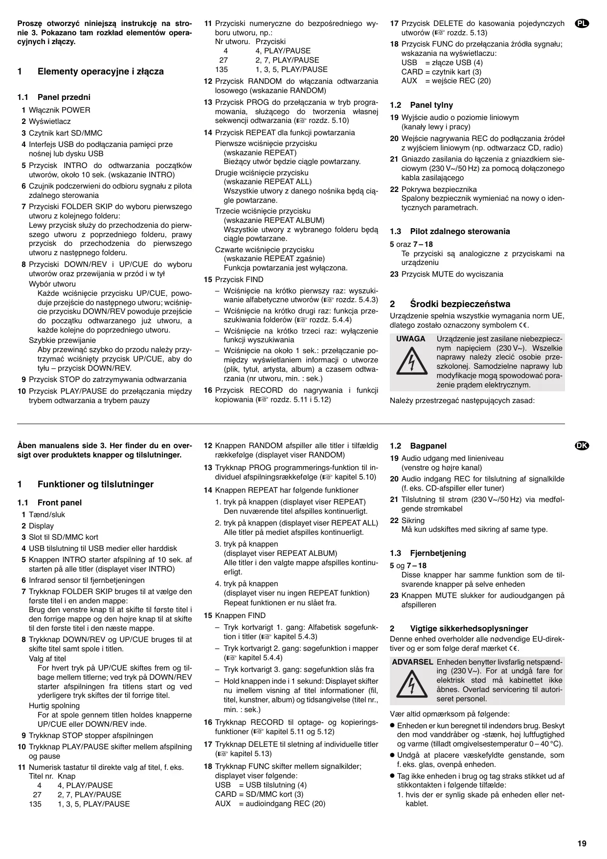2) W przypadku nagrywania na karcie SD/MMC, do gniażda USB (4) nie sączycy zăden nosnik. W przypadku podȩczenia za równo karty SD/MMC oraz nosnika USB, nagrywanie;będzie automatycznie dokonywane na nośniku USB.