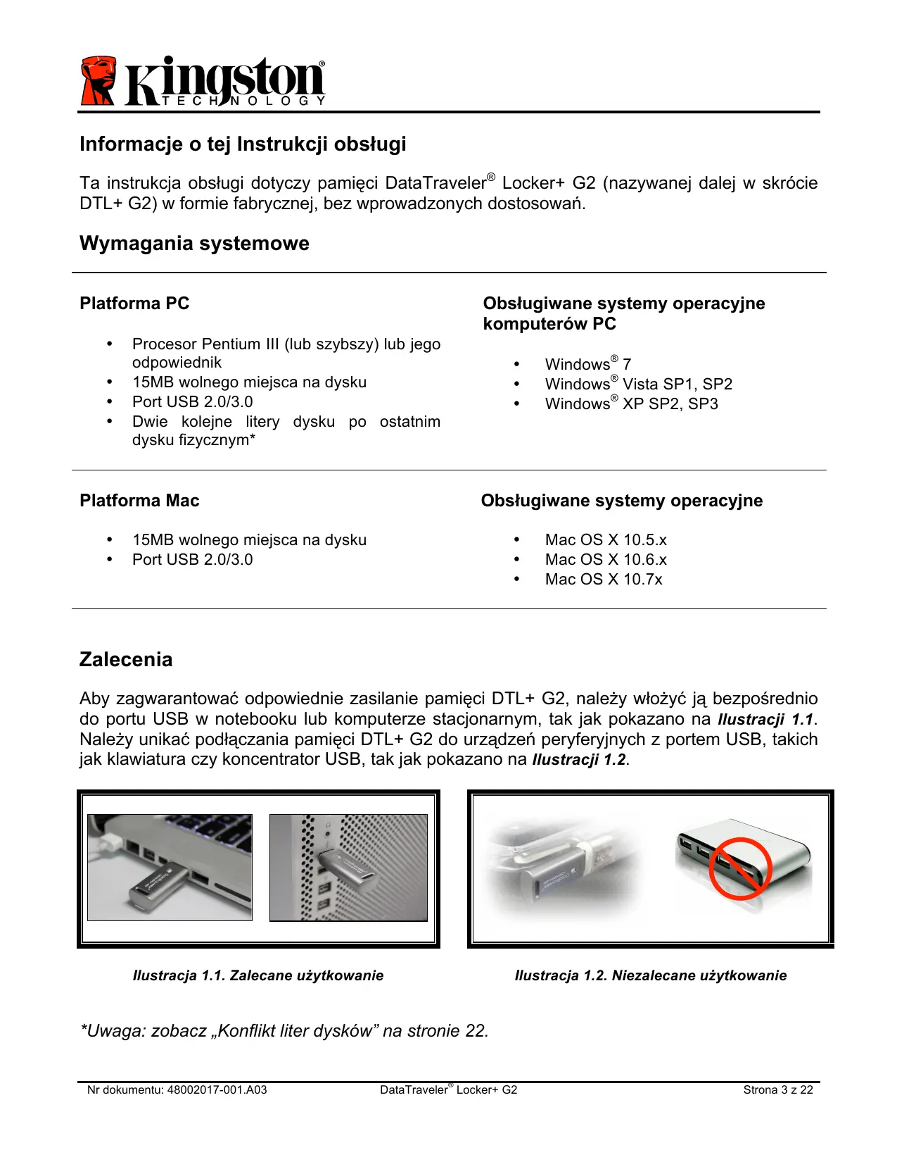 Pobierz instrukcję dla swojego Pamięć USB w formacie PDF za darmo! Znajdź swoją instrukcję DATATRAVELER LOCKER G2/DTLPG2 - KINGSTON i weź swoje urządzenie elektroniczne z powrotem w ręce. Na tej stronie opublikowane są wszystkie dokumenty niezbędne do korzystania z urządzenia. DATATRAVELER LOCKER G2/DTLPG2 marki KINGSTON.