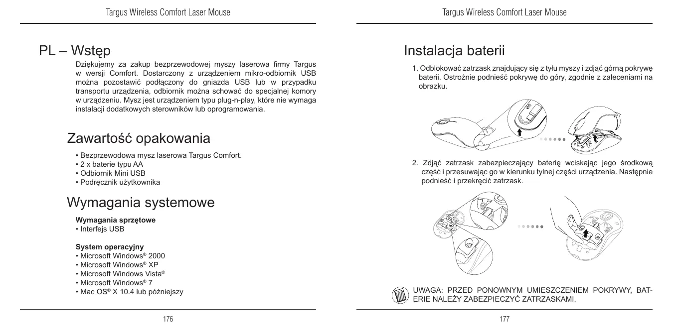 AMW51EU - Mysz bezprzewodowa TARGUS - Bezpłatna instrukcja obsługi