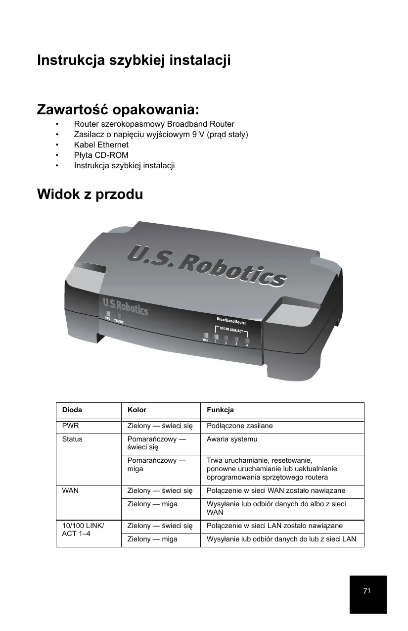 INSTRUKCJA OBSŁUGI BROADBAND ROUTER US ROBOTICS