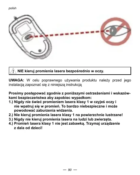 3.) Nigdy nie kieruj promienia lasera na ludzi lub zwierzeta.