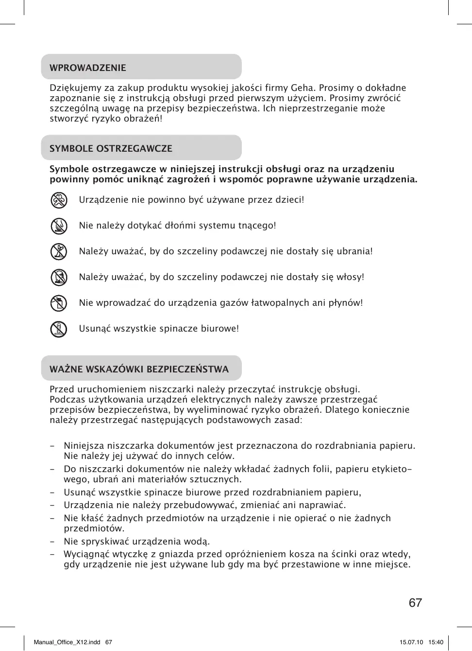 INSTRUKCJA OBSŁUGI OFFICE X12 GEHA
