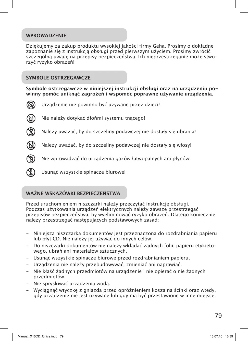 INSTRUKCJA OBSŁUGI OFFICE X15 CD GEHA