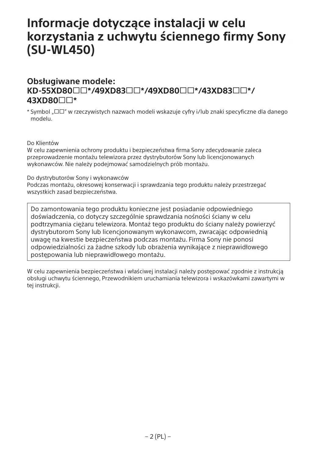 KD55X8005 - Telewizor SONY - Bezpłatna instrukcja obsługi