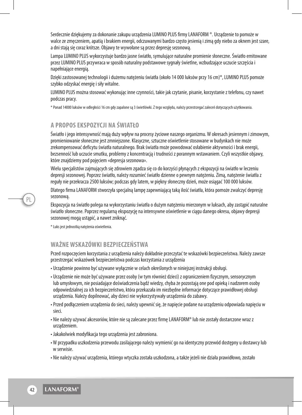 LUMINO PLUS - LANAFORM - Bezpłatna instrukcja obsługi