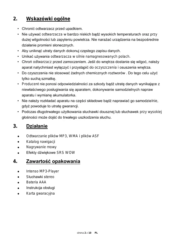Znajdź bezpłatnie instrukcję urządzenia MUSIC RUNNER INTENSO w formacie PDF.