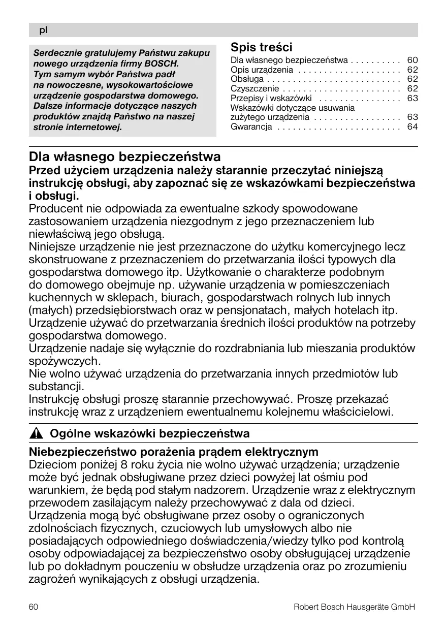 INSTRUKCJA OBSŁUGI ERGOMIXX MSM66110 BOSCH