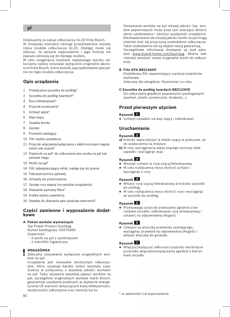 BGN2A213 - GL20 - Odkurzacz BOSCH - Bezpłatna instrukcja obsługi