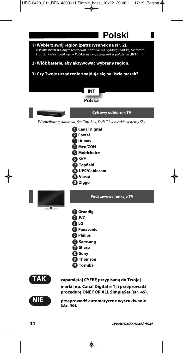 URC6420 - Uniwersalny pilot ONE FOR ALL - Bezpłatna instrukcja obsługi