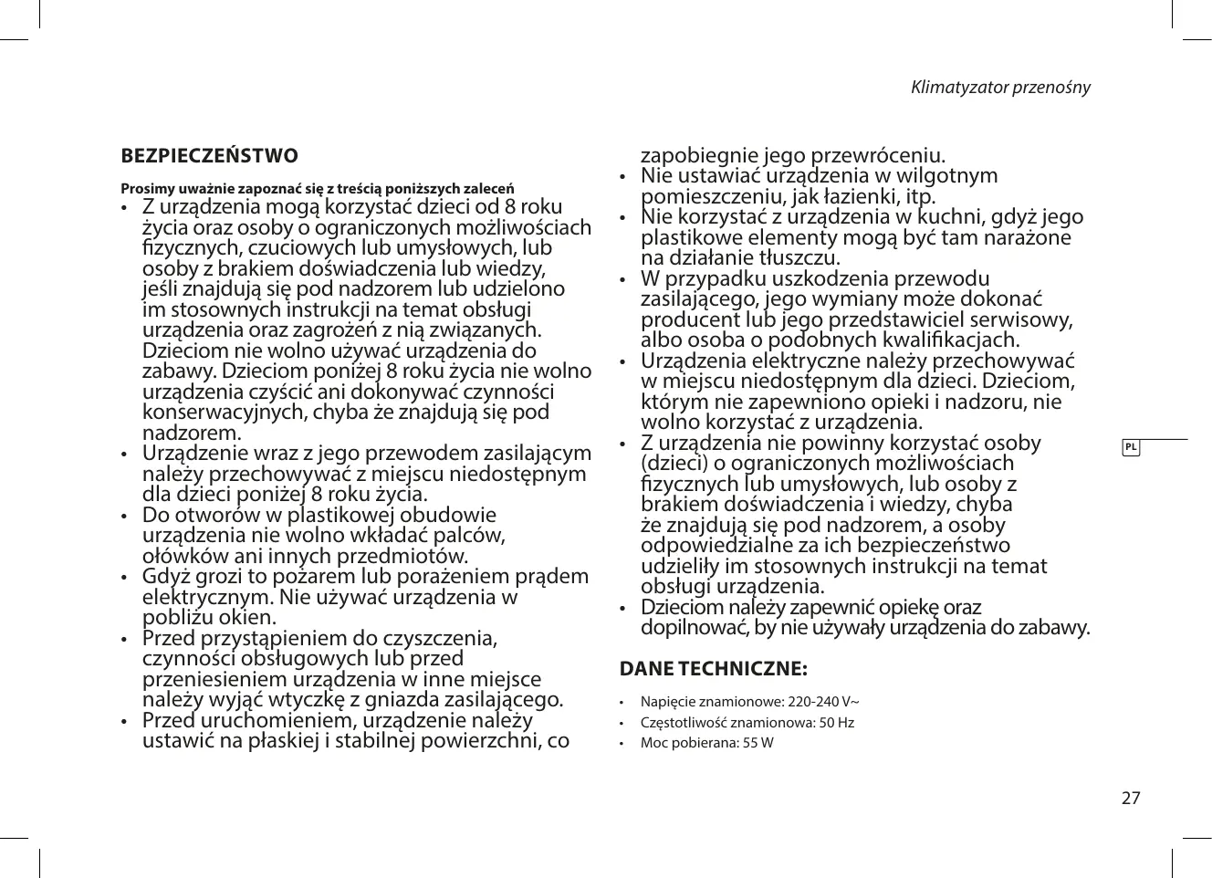- Urządzenia elektryczne należy przechowywać w miejscu niedostępnym dla dzieci. Dzieciom, którym nie zapewniono opieki i nadzoru, nie wolno korzystać z urządzenia.
