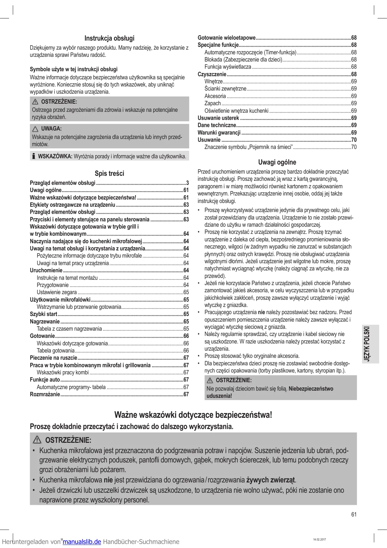 - Ważne wskazówki dotyczące bezpieczeństwa! p. 61
