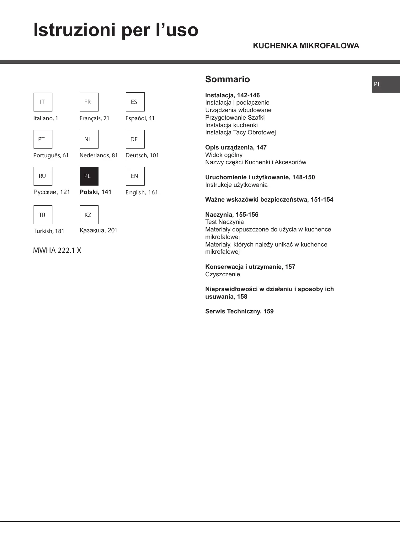 MN512IX - Kuchenka mikrofalowa HOTPOINT - Bezpłatna instrukcja obsługi