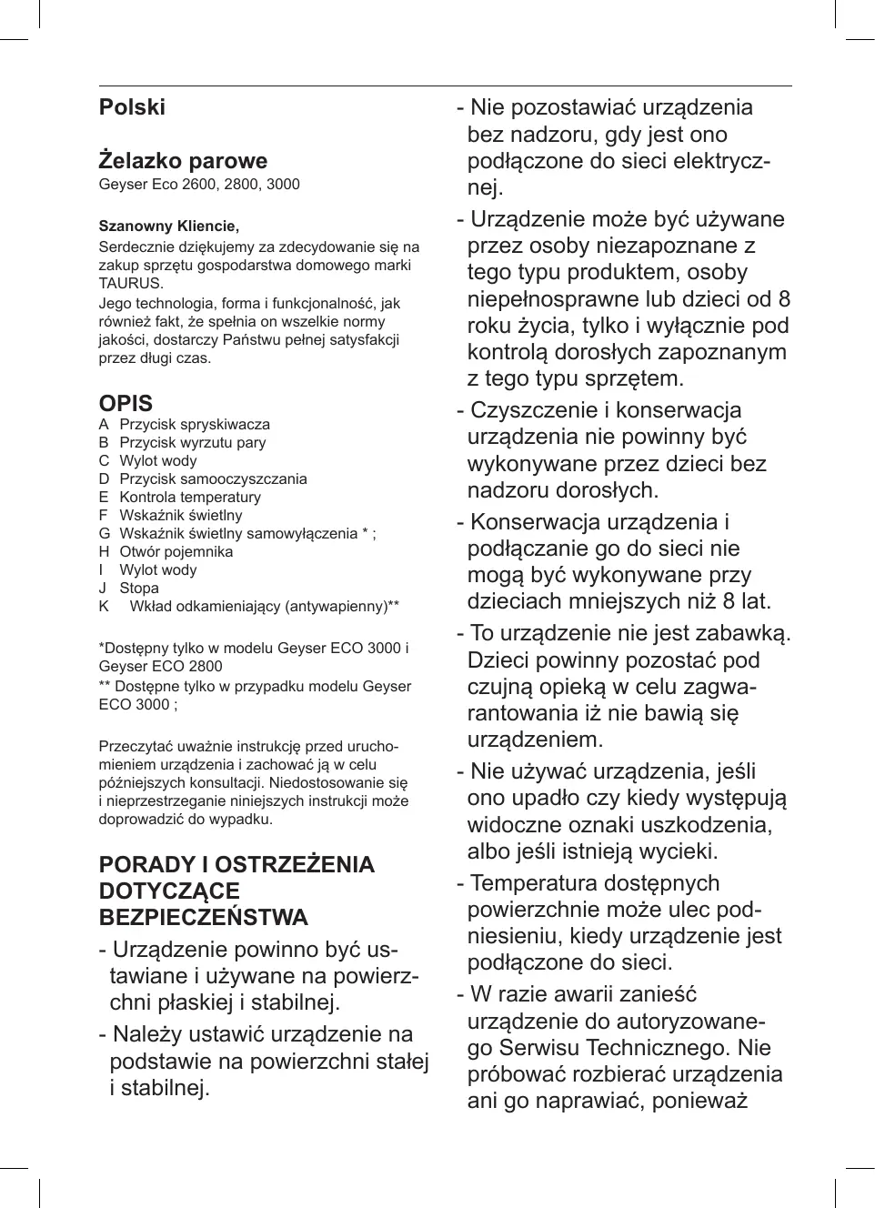 INSTRUKCJA OBSŁUGI AGATHA 2800 TAURUS