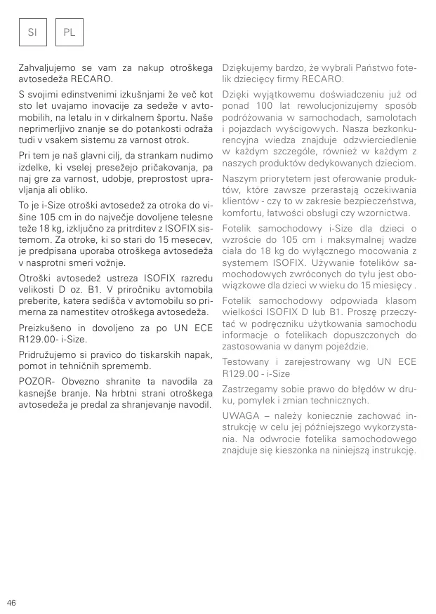 OPTIA FIX - Fotelik samochodowy RECARO - Bezpłatna instrukcja obsługi