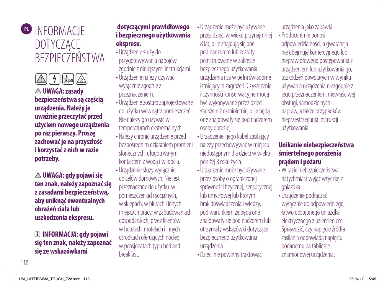 MANTENIMIENTO COTIDIANO/CUIDADOS DIÁRIOS���������������������������������������������� 105 LAVADO A MANO DEL RAPID CAPPUCCINO SYSTEM (R.C.S.)/ CUESTIONES ECOLÓGICAS Y DE ELIMINACIÓN DE RESIDUOS/ ELIMINAÇÃO E PREOCUPAÇÕES ECOLÓGICAS �������������������������������������������������� 115 PÓNGASE EN CONTACTO CON EL CLUB NESPRESSO/CONTACTE O CLUBE NESPRESSO��������������������������������������������������������������������������������������������������� 115 Asegúrese de que la tensión de la fuente de energía sea la misma que la que se indica en la placa de señalización. El uso de una conexión incorrecta anula la garantía. El aparato solo debe conectarse después de la instalación • N o tire del cable de alimentación encima de bordes afilados; recójalo o déjelo colgar. • G uarde el cable de alimentación lejos del calor y la humedad. • S i el cable de alimentación 25.04.17 15:45 Pasta «Bem-vindo à Nespresso»