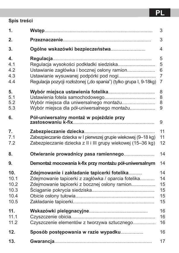 Zabezpieczanie dziecka 11 Zabezpieczanie dziecka w I pierwszej grupie wiekowej (9–18 kg) 11 Zabezpieczanie dziecka z II i III grupy wiekowej (15–36 kg) 12 Otwieranie prowadnicy pasa ramiennego