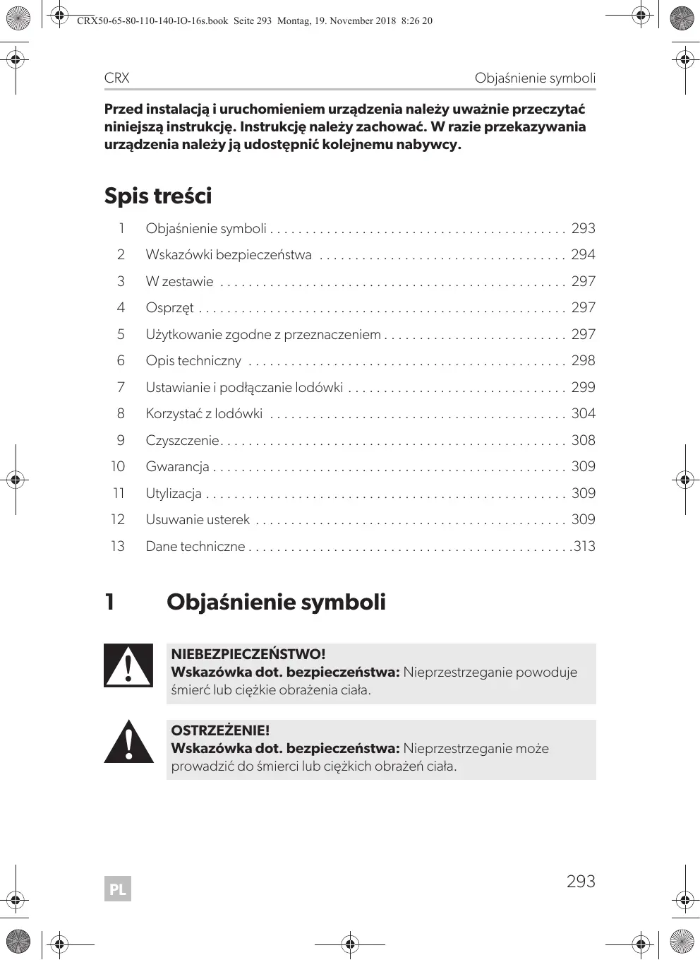 CRX OSTROŻNIE! Wskazówka dot. bezpieczeństwa: Nieprzestrzeganie może prowadzić do obrażeń ciała. UWAGA! Nieprzestrzeganie może prowadzić do powstania szkód materialnych i zakłóceń w działaniu produktu. WSKAZÓWKA Informacje uzupełniające dot. obsługi produktu.