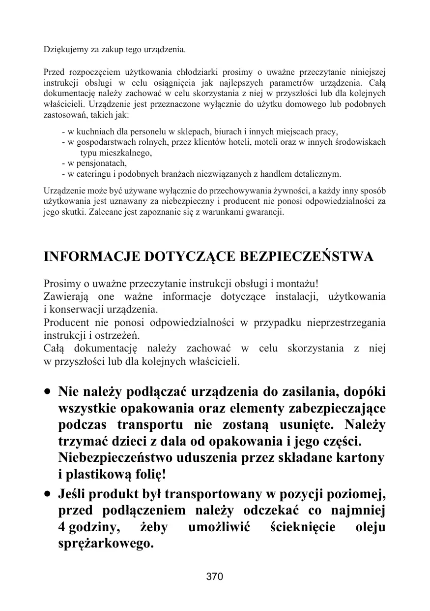 - dans les exploitations agricoles, pour la clientèle des hôtels, motels et autres environnements de type résidentiel - dans les hébergements Bed and Breakfast (B & B) - pour les services de restauration et des applications similaires non destinées à une vente au détail. Cet appareil doit être utilisé uniquement à des fins de conservation d'aliments, toute autre utilisation est considérée comme dangereuse et le fabricant ne sera pas responsable de toute omission. De plus, il est recommandé de prendre note des conditions de garantie.