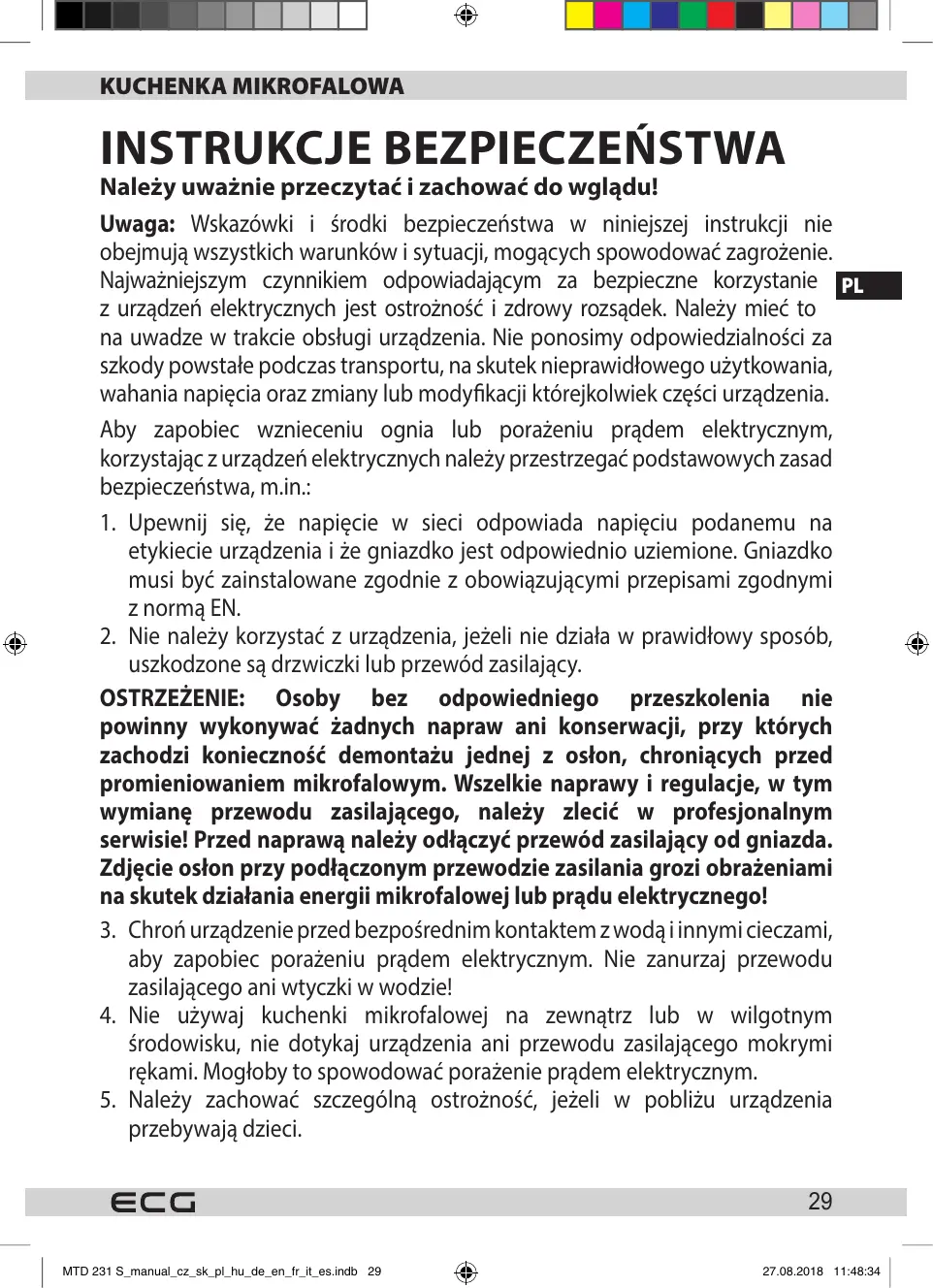 MTD 231 S - Kuchenka mikrofalowa ECG - Bezpłatna instrukcja obsługi