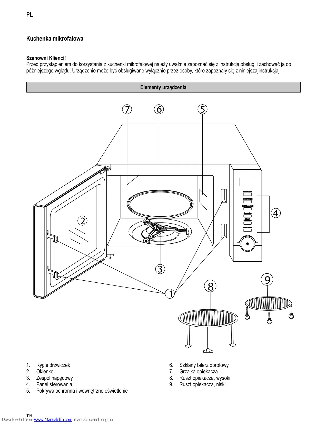 Przed przystapieniem do korzystania z kuchenki mikrofalowej nalewy uwaznie zapoznać sie z instrukcja obstrugi i zachować ja do poźniejskiego wgladu. Urzadzenia要去byc obstrugwane wyłacznie przyez osoby, krózapoznały sie z niniejsza instrukcja.