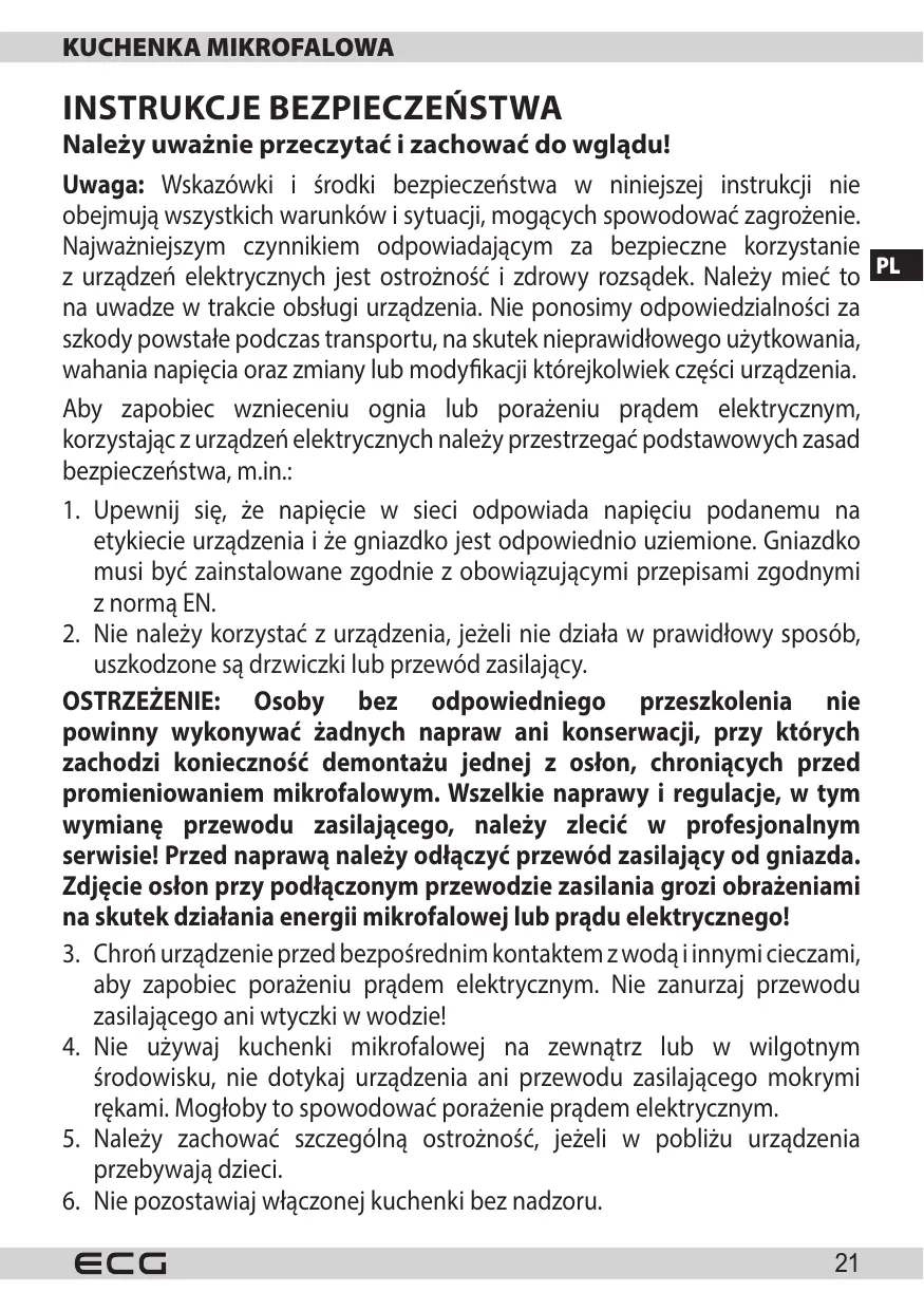MTM 1774 BE - Kuchenka mikrofalowa ECG - Bezpłatna instrukcja obsługi