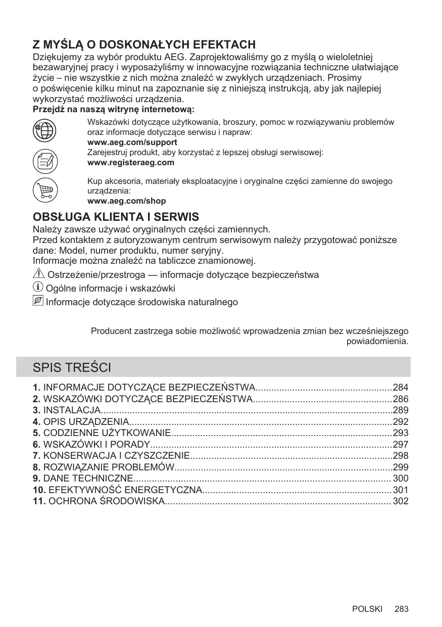 Obtenir des conseils d’utilisation, des brochures, un dépanneur, des informations sur le service et les réparations : www.aeg.com/support Enregistrer votre produit pour un meilleur service : www.registeraeg.com Acheter des accessoires, consommables et pièces de rechange d’origine pour votre appareil : www.aeg.com/shop