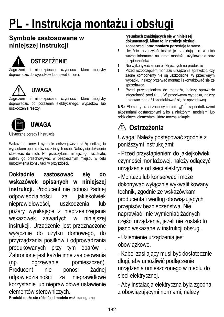 PL - Instrukcja montażu i obsługi Symbole zastosowane w niniejszej instrukcji