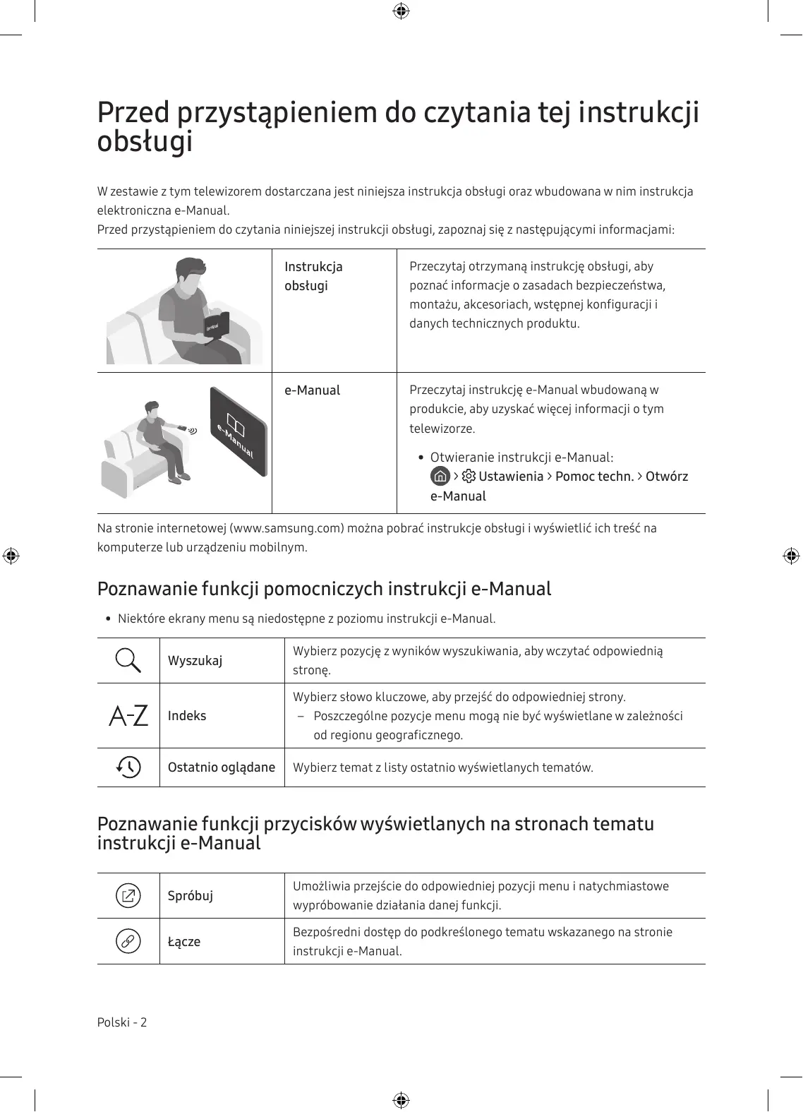 Pobierz instrukcję dla swojego Telewizor w formacie PDF za darmo! Znajdź swoją instrukcję THE FRAME QE32LS03T - SAMSUNG i weź swoje urządzenie elektroniczne z powrotem w ręce. Na tej stronie opublikowane są wszystkie dokumenty niezbędne do korzystania z urządzenia. THE FRAME QE32LS03T marki SAMSUNG.