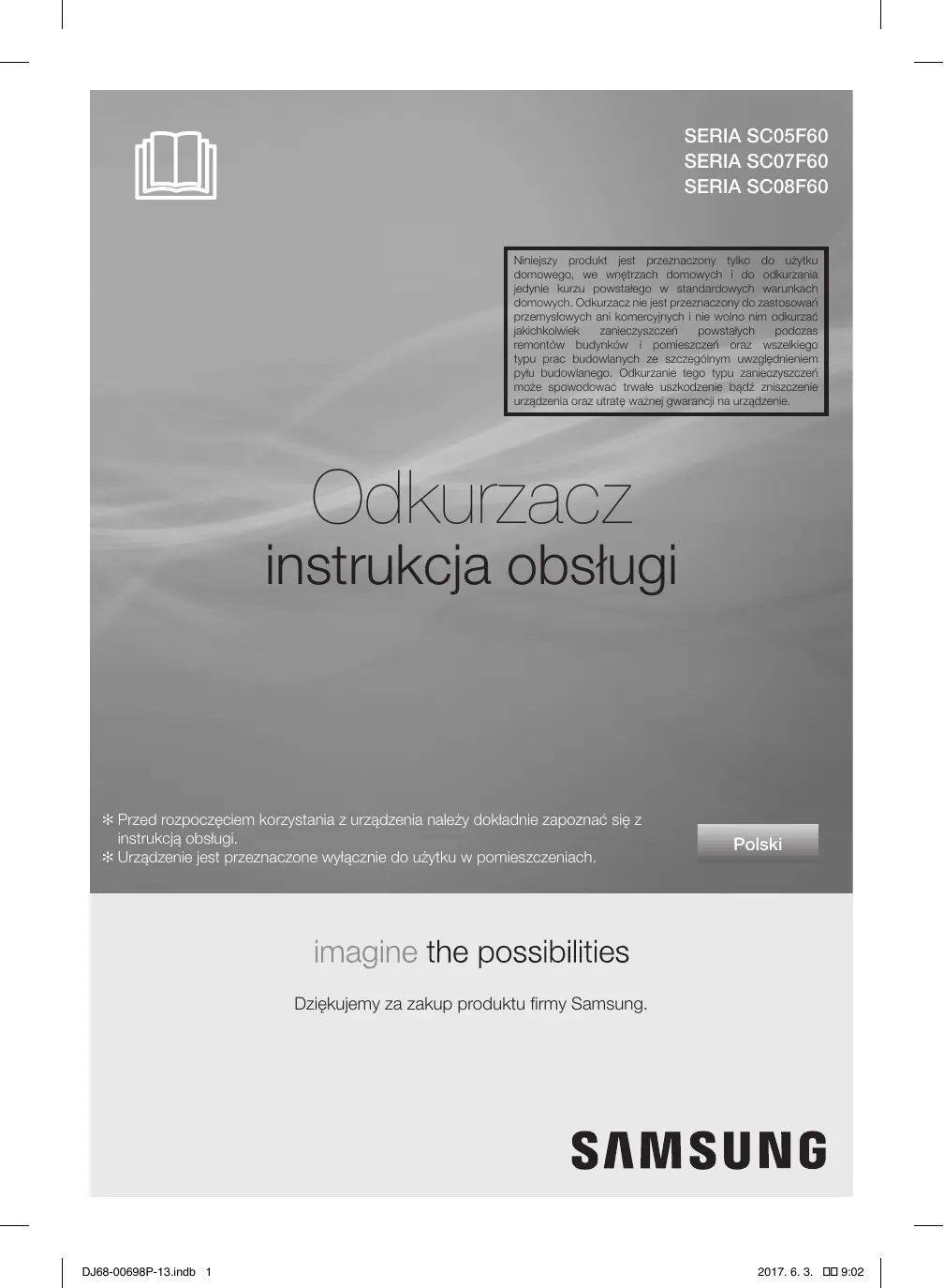 Pobierz instrukcję dla swojego Odkurzacz w formacie PDF za darmo! Znajdź swoją instrukcję VC07F60WNUR/EF - VC07F60WNUR/EF - SAMSUNG i weź swoje urządzenie elektroniczne z powrotem w ręce. Na tej stronie opublikowane są wszystkie dokumenty niezbędne do korzystania z urządzenia. VC07F60WNUR/EF - VC07F60WNUR/EF marki SAMSUNG.