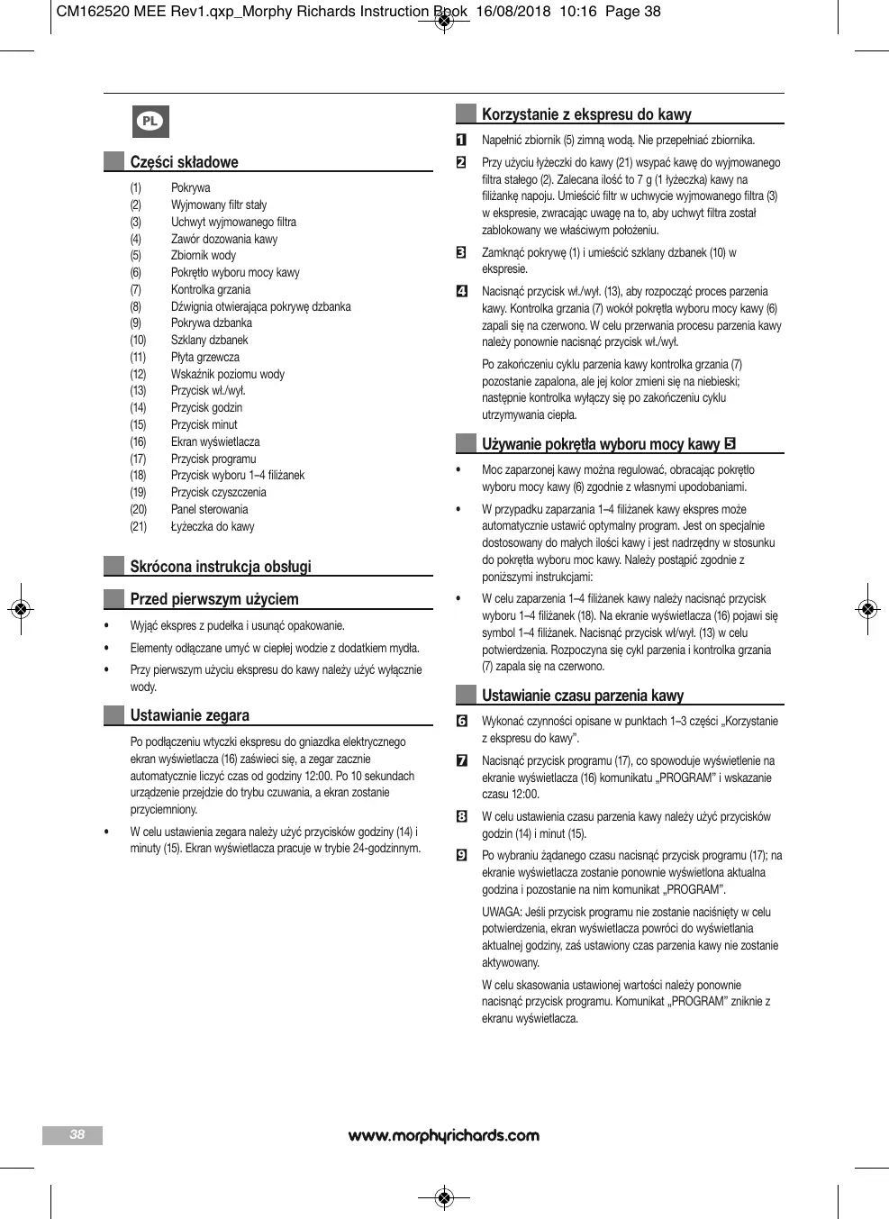 Pobierz instrukcję dla swojego w formacie PDF za darmo! Znajdź swoją instrukcję 162520 - MORPHY RICHARDS i weź swoje urządzenie elektroniczne z powrotem w ręce. Na tej stronie opublikowane są wszystkie dokumenty niezbędne do korzystania z urządzenia. 162520 marki MORPHY RICHARDS.