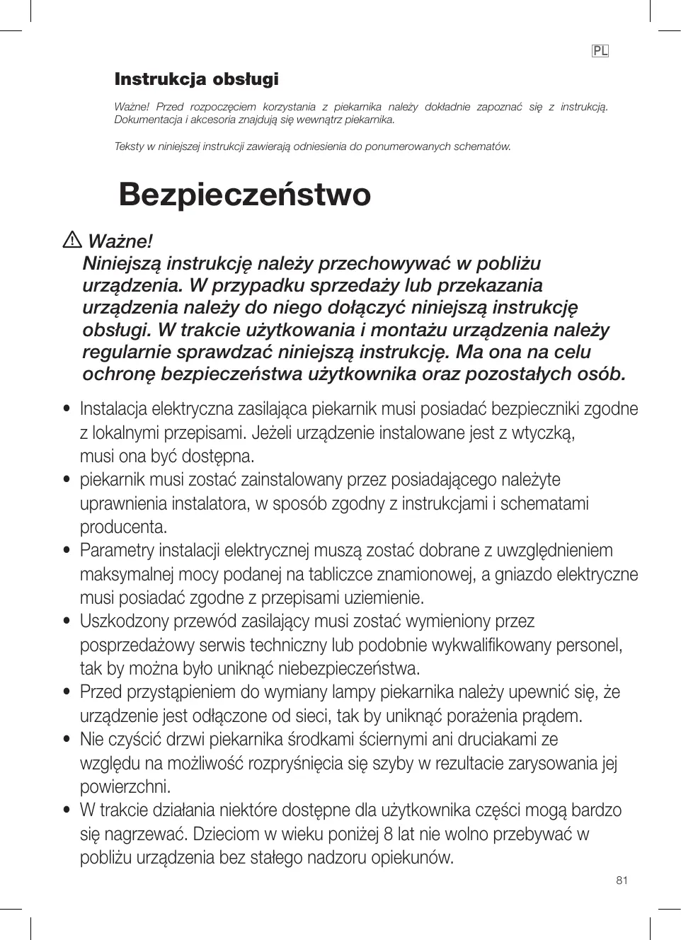 • Dieses Gerät kann von Kindern ab 8 Jahren und Personen verwendet mit verminderten physischen, sensoriellen oder geistigen Fähigkeiten oder mangelnder Erfahrung und Kenntnis benutzt werden, sofern sie eine angemessene Feststellung des Modells L’installation du four doit être confiée à un installateur agréé qui suivra les instructions et les schémas du fabricant. L’installation électrique doit être dimensionnée à la puissance maximale indiquée sur la plaque signalétique et la prise électrique équipée d’une mise à la terre réglementaire. Si le câble électrique est endommagé, il doit être remplacé par un technicien du service après-vente ou toute autre personne qualifiée afin d’éviter tout danger. S’assurer que l’appareil est débranché avant de remplacer la lampe pour éviter un éventuel choc électrique. Ne pas utiliser de produits de nettoyage abrasifs ou d’éponges métalliques dures pour nettoyer la porte du four, car vous risquer de la rayer et de provoquer la cassure en petits morceaux du verre. Pendant le fonctionnement de l’appareil, certaines parties accessibles peuvent devenir chaudes. Veiller à éloigner les enfants de moins de 8 19