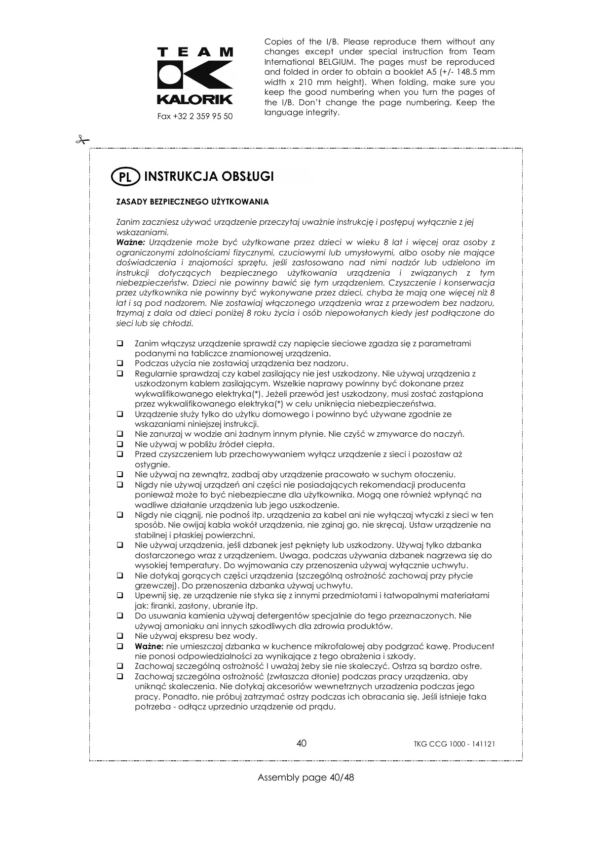 TKG MG 1000 - KALORIK - Bezpłatna instrukcja obsługi