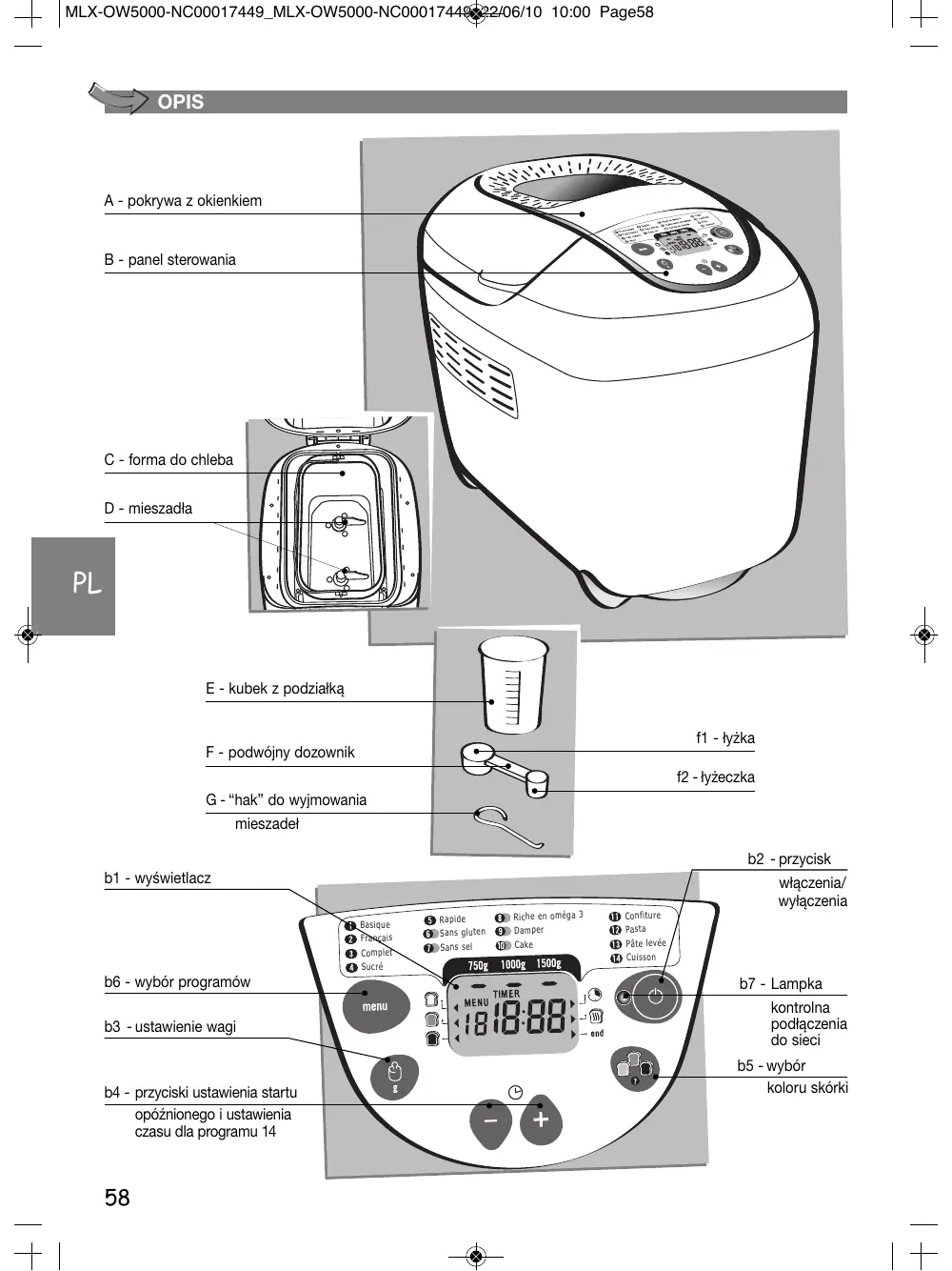 - Przechytać uwaźne instrukcie obstrugi: chleba w tym urzadzeniu nie przygotowuje są w taki sam sposob jak recznie!