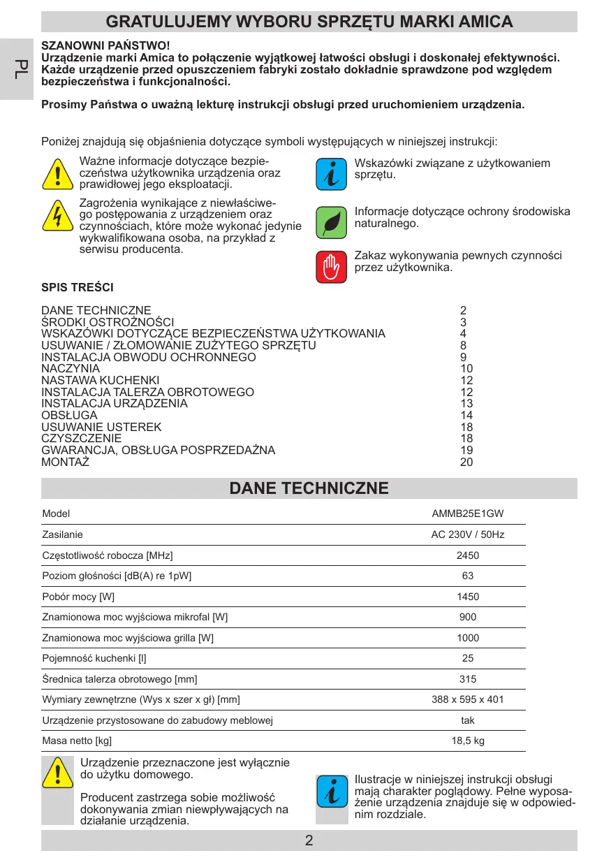 AMMB25E1GI - Mikrofale AMICA - Bezpłatna instrukcja obsługi