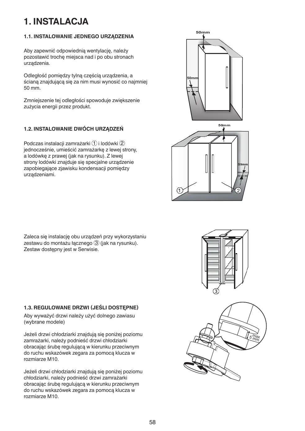 1.3. CHARNIÈRES AJUSTABLES (SELON LE MODÈLE)