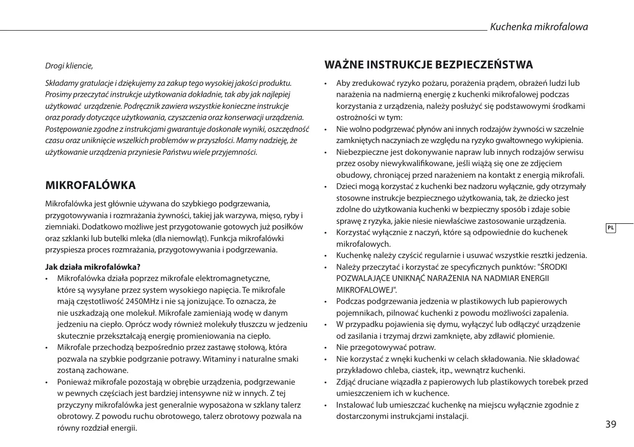 - Aby zredekowacr rzyko pozaru, porazenia pradem, obrazen ludzi lub narazenia na nadmierna energia z kuchenki mikrofalowej podczas korzystania z urzadzenia, nalezy posluyc sie podstawowych i sterdkami ostroznoci w tym: