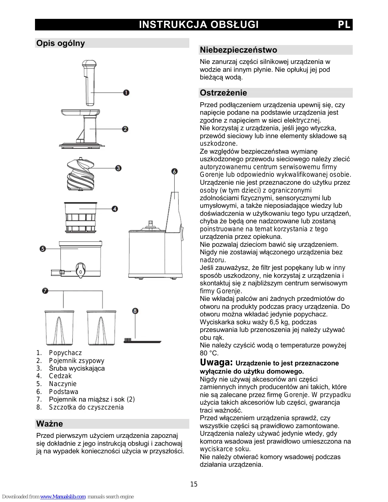 JC4800VWY - Sokowirówka GORENJE - Bezpłatna instrukcja obsługi