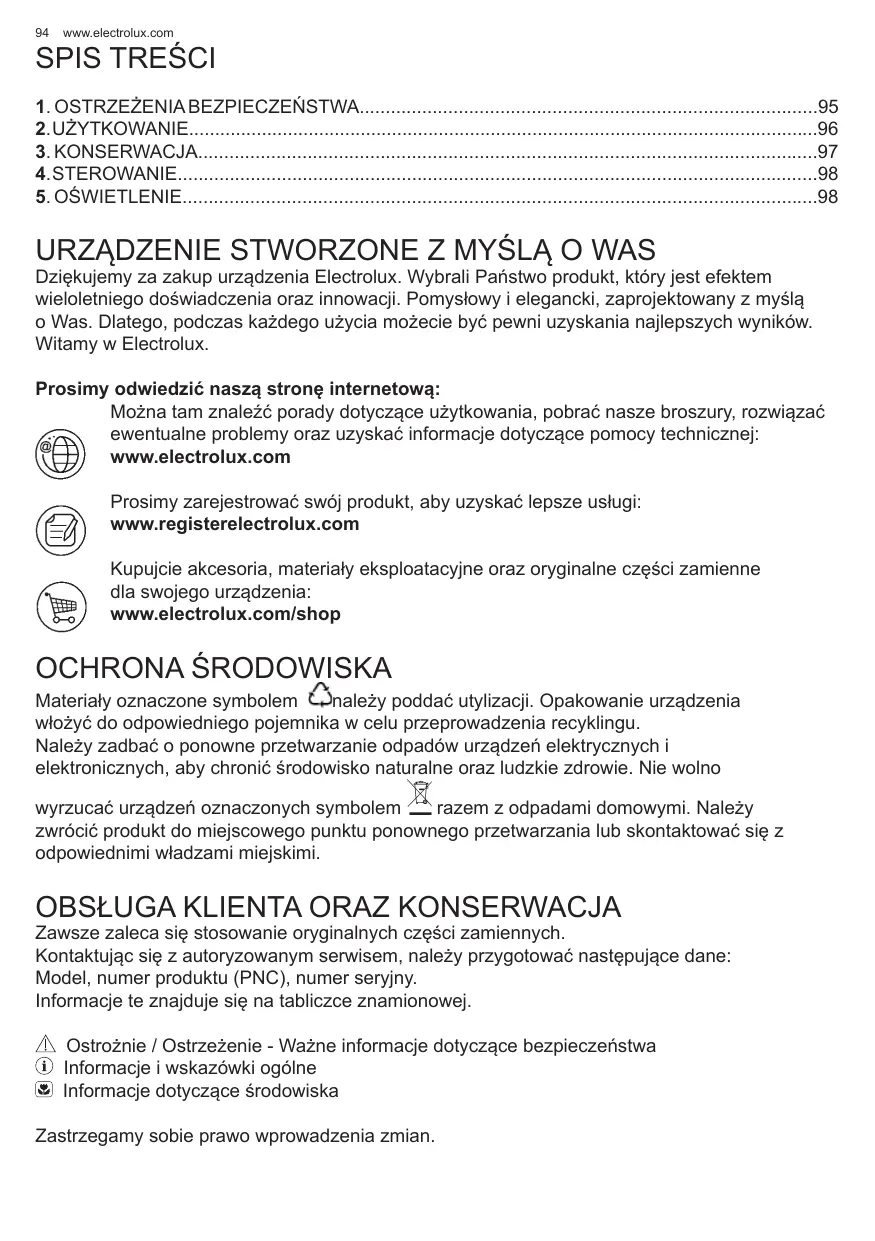 Recevoir des conseils d’utilisation, télécharger nos brochures, résoudre des problèmes éventuels et obtenir des renseignements sur le service après-vente: www.electrolux.com Enregistrer votre produit et obtenir un meilleur service: www.registerelectrolux.com Acheter des accessoires, des consommables et des pièces de rechange d’origine pour votre appareil: www.electrolux.com/shop
