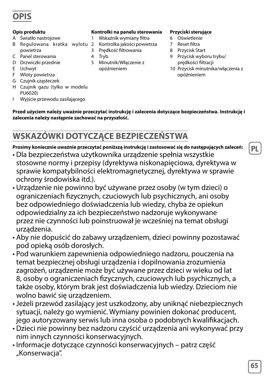 INSTRUKCJA OBSŁUGI INTENSE PURE AIR PU4010 ROWENTA