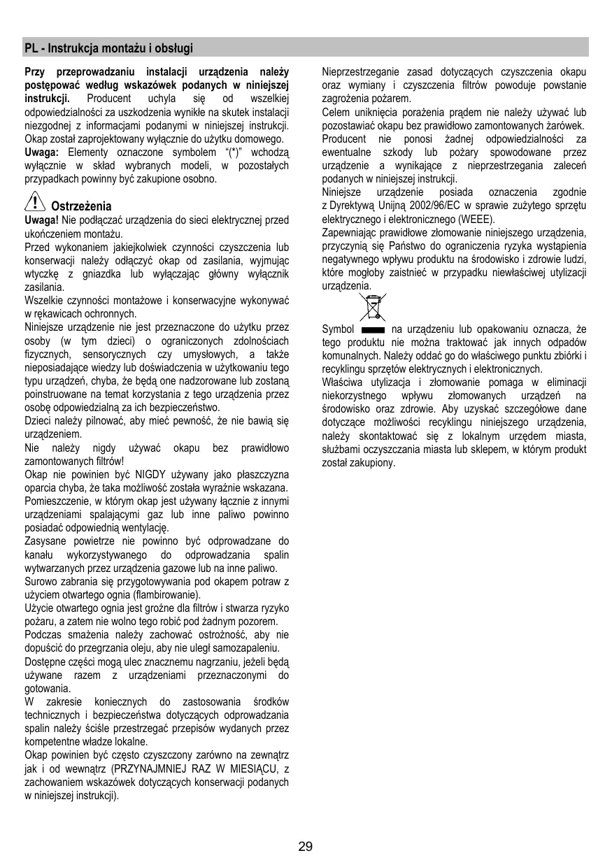 Montagevoorschriften en gebruiksaanwijzingen Istruzioni di montaggio e d'uso Montaje y modo de empleo Instruções para montagem e utilização ΟΔΗΓΙΕΣ ΣΥΝΑΡΜΟΛΟΓΗΣΗΣ ΚΑΙ ΧΡΗΣΗΣ La non observation de ces normes de nettoyage de la hotte et du changement et nettoyage des filtres comporte des risques d’incendie. Ne pas utiliser ou laisser la hotte sans que les ampoules soient correctement placées pour éviter tout risque de choc électrique. La société décline toute responsabilité pour d’éventuels inconvénients, dégâts ou incendies provoqués par l’appareil et dérivés de la non observation des instructions reprises dans ce manuel. Cet appareil porte le symbole du recyclage conformément à la Directive Européenne 2002/96/CE concernant les Déchets d’Équipements Électriques et Électroniques (DEEE ou WEEE). En procédant correctement à la mise au rebut de cet appareil, vous contribuerez à empêcher toute conséquence nuisible pour l’environnement et la santé de l’homme.